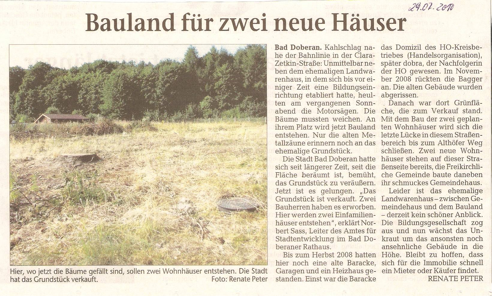 Quelle: facebook Gruppe Geschichte Bad Doberan, Peter Zimmermann, Kröpelin; Baumaßnahmen und Entwicklung nach 1990 in der Clara-Zetkin-Straße/Althöfer Weg