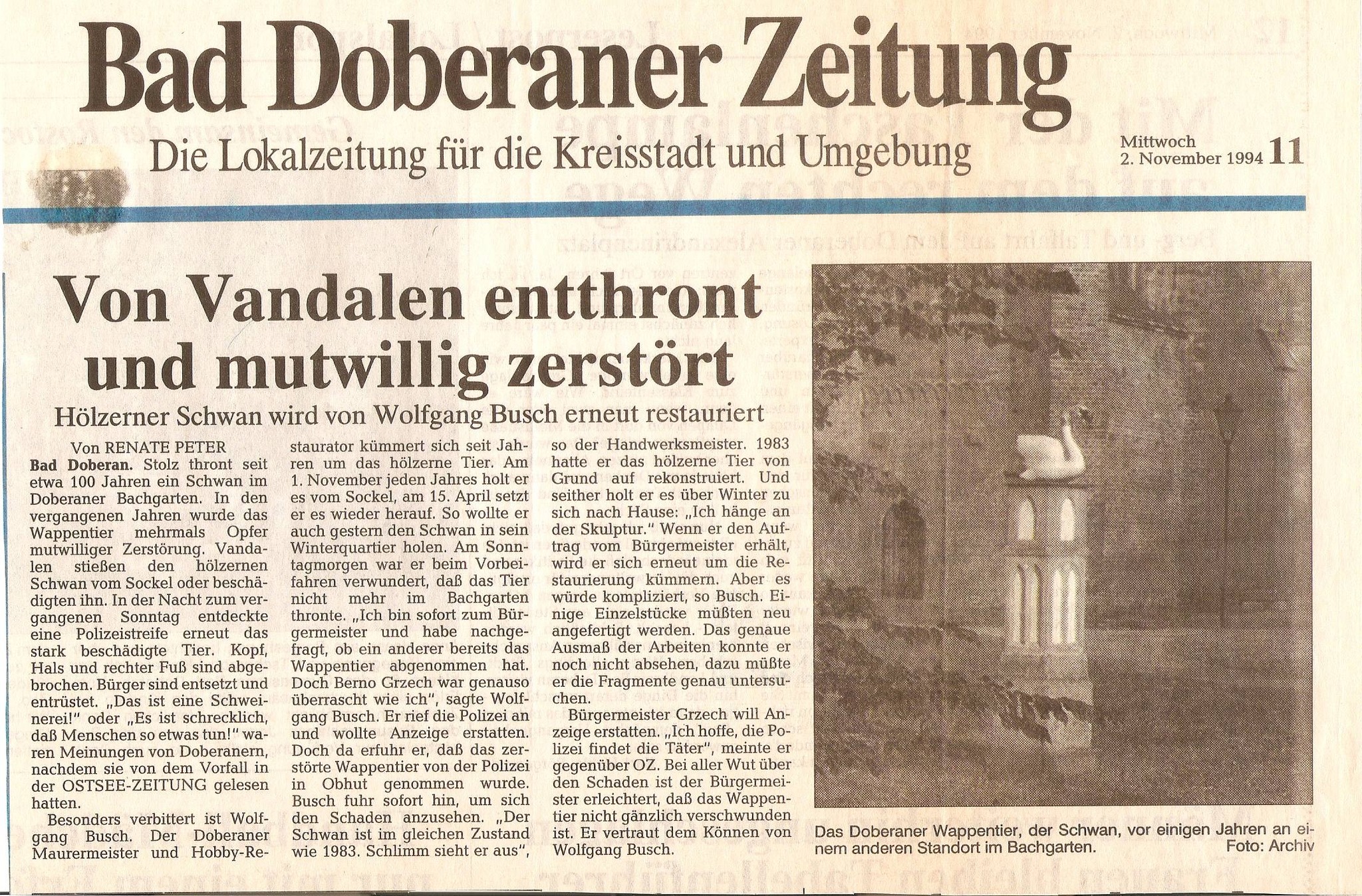 Quelle: Zeitungsregesten Peter Zimmermann, Kröpelin