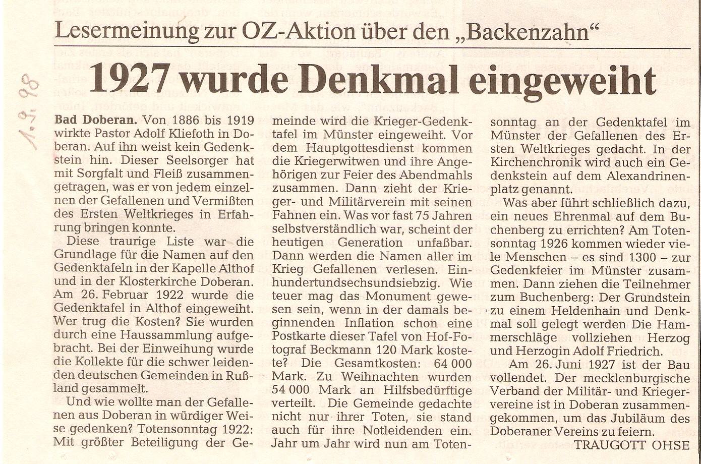 Quelle: Fotos und Zeitungsregesten Peter Zimmermann, Kröpelin