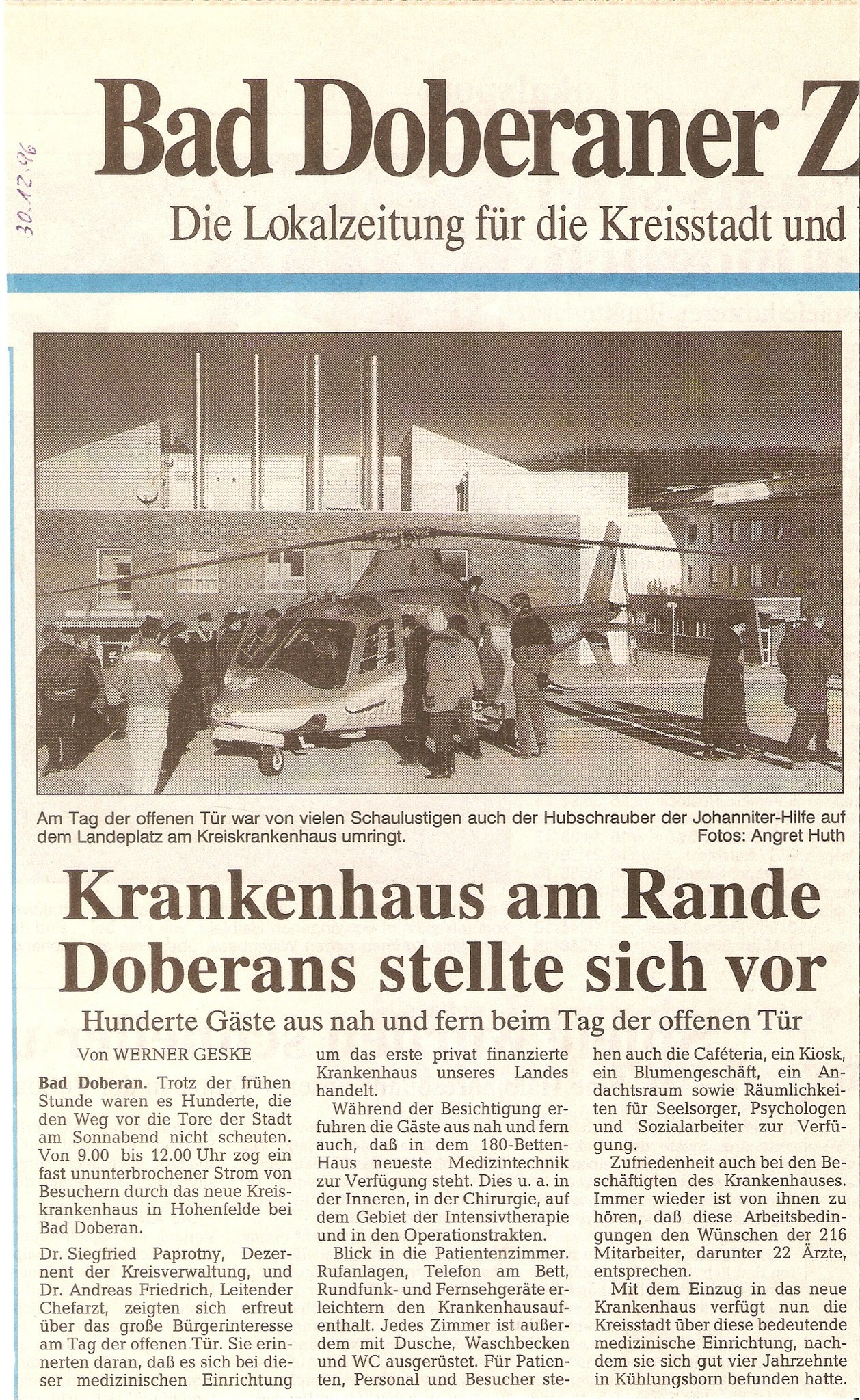 Quelle: Privatarchiv mit Zeitungsregesten von Peter Zimmermann, Kröpelin