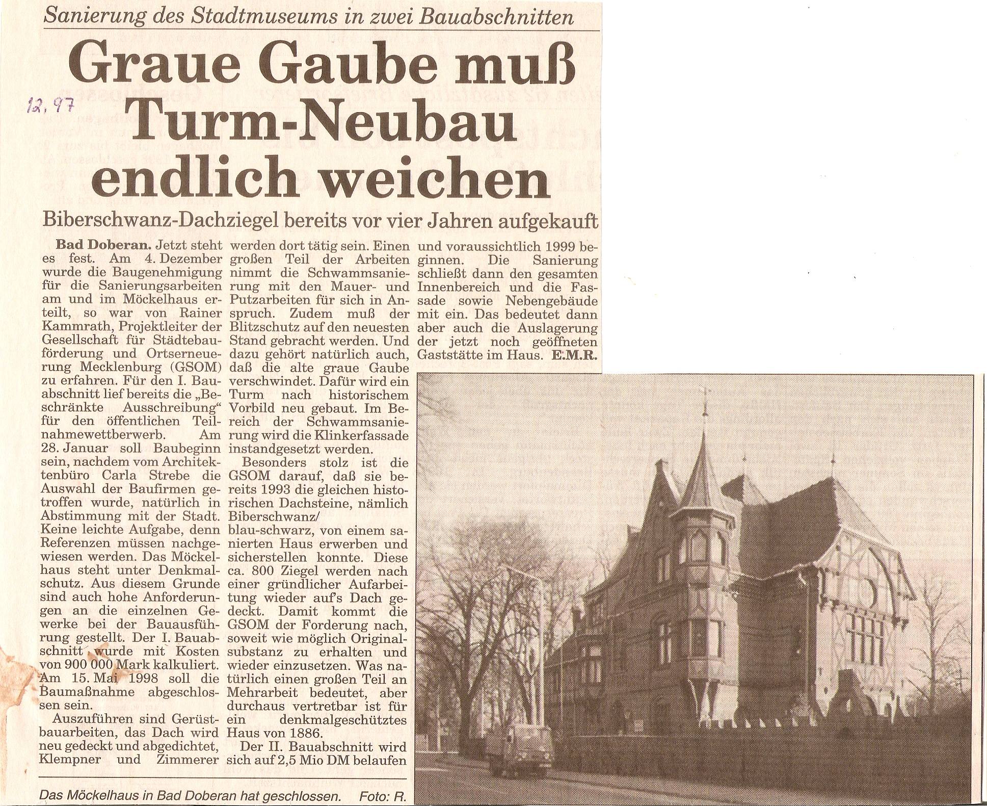 Zeitungsregesten Peter Zimmermann, Kröpelin