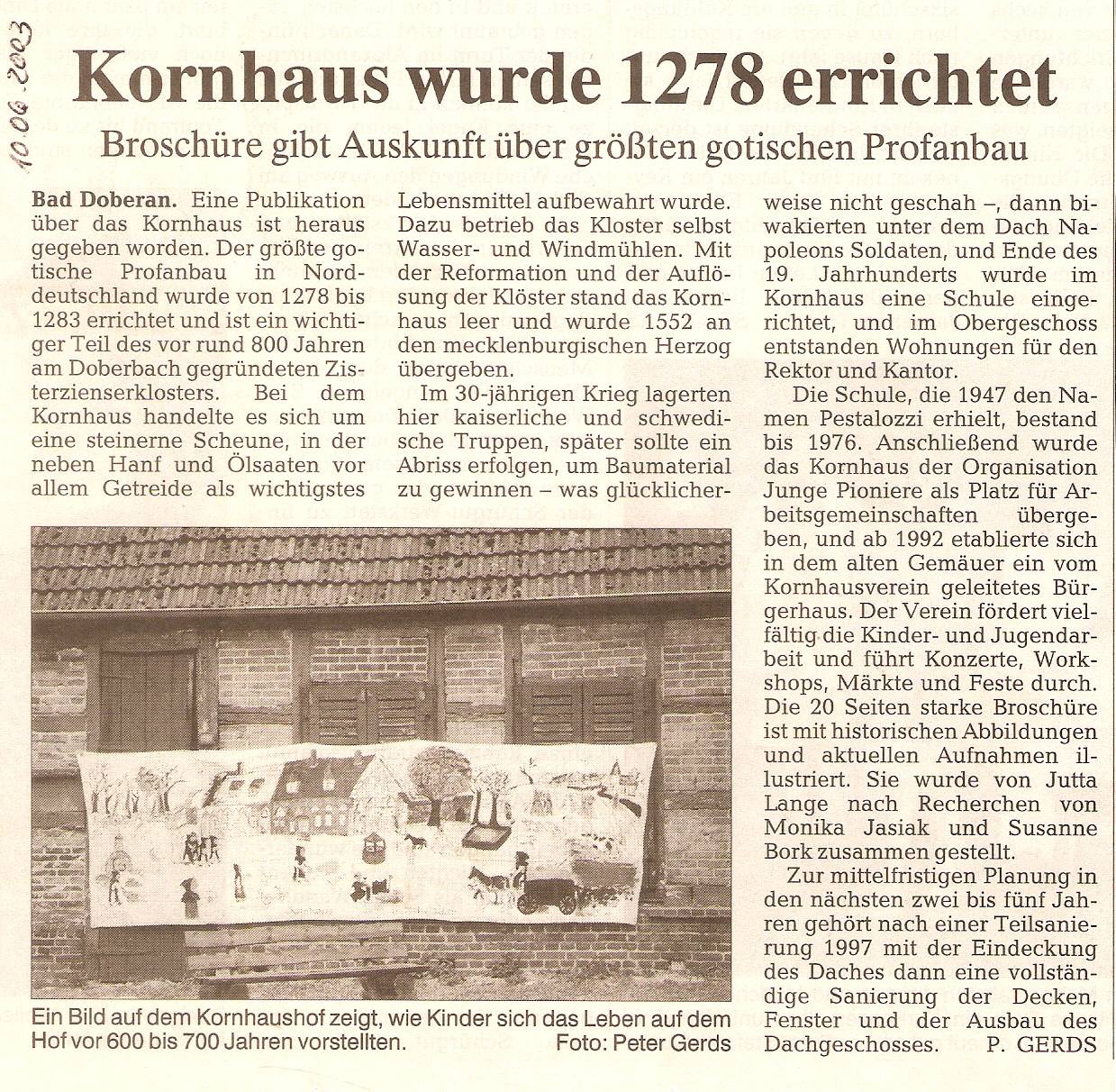 Quelle: Zeitungsregesten und Fotos zum Kornhaus von Peter Zimmermann, Kröpelin