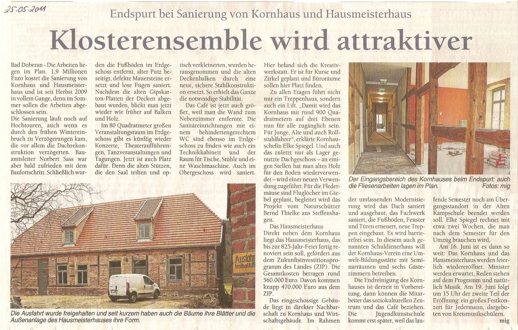 Quelle: Zeitungsregesten und Fotos zum Kornhaus von Peter Zimmermann, Kröpelin