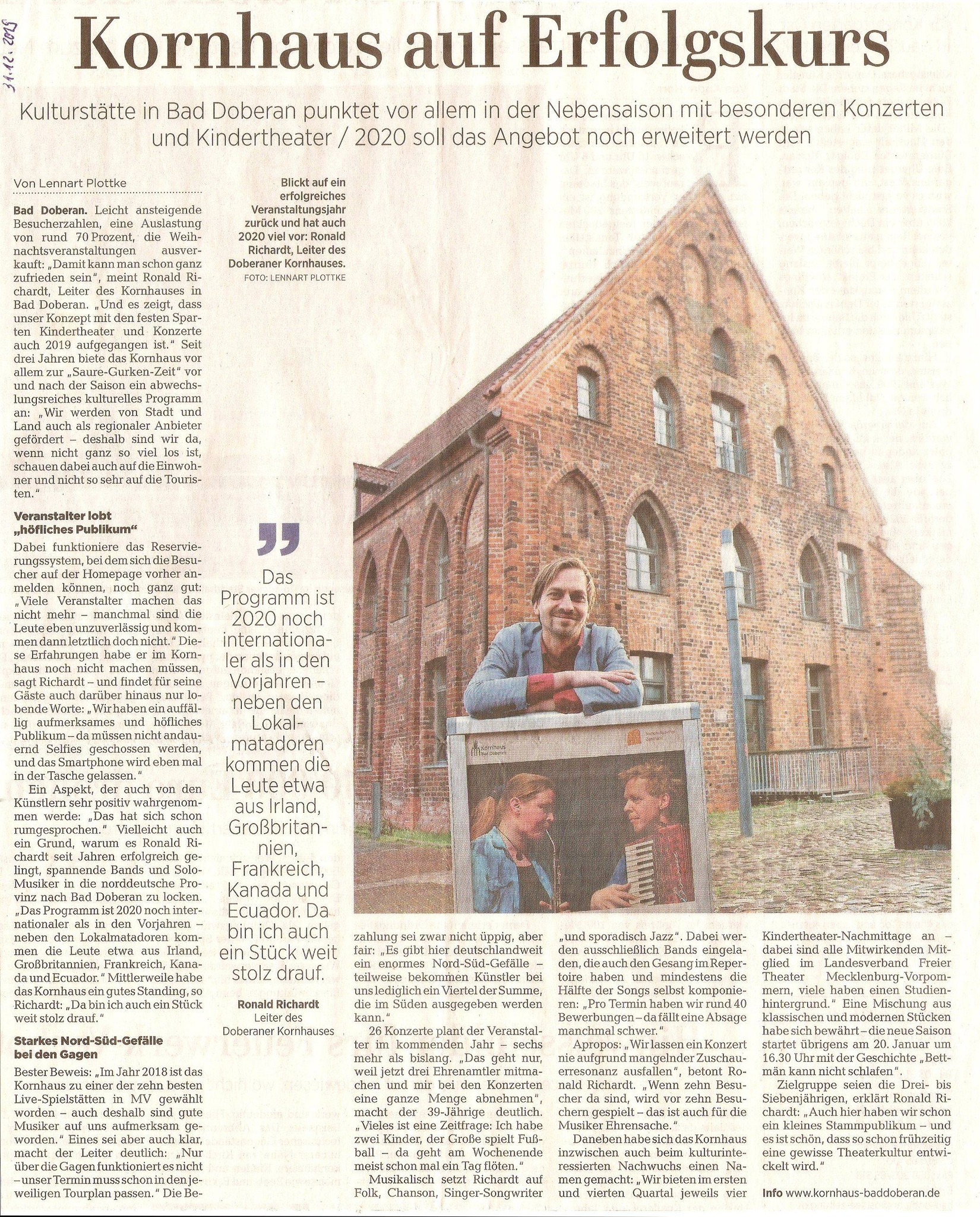 Quelle: Zeitungsregesten und Fotos zum Kornhaus von Peter Zimmermann, Kröpelin