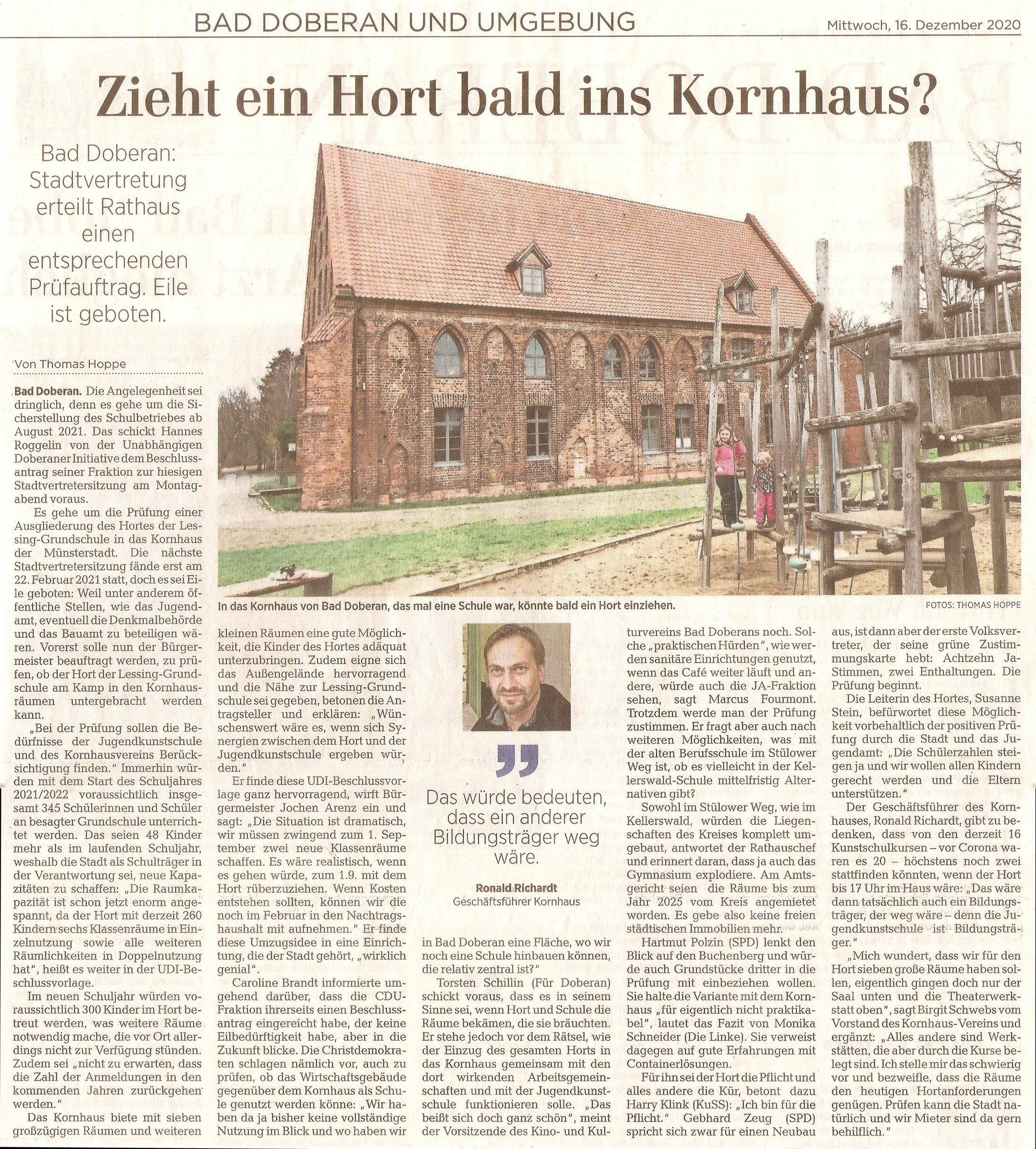 Quelle: Zeitungsregesten und Fotos zum Kornhaus von Peter Zimmermann, Kröpelin