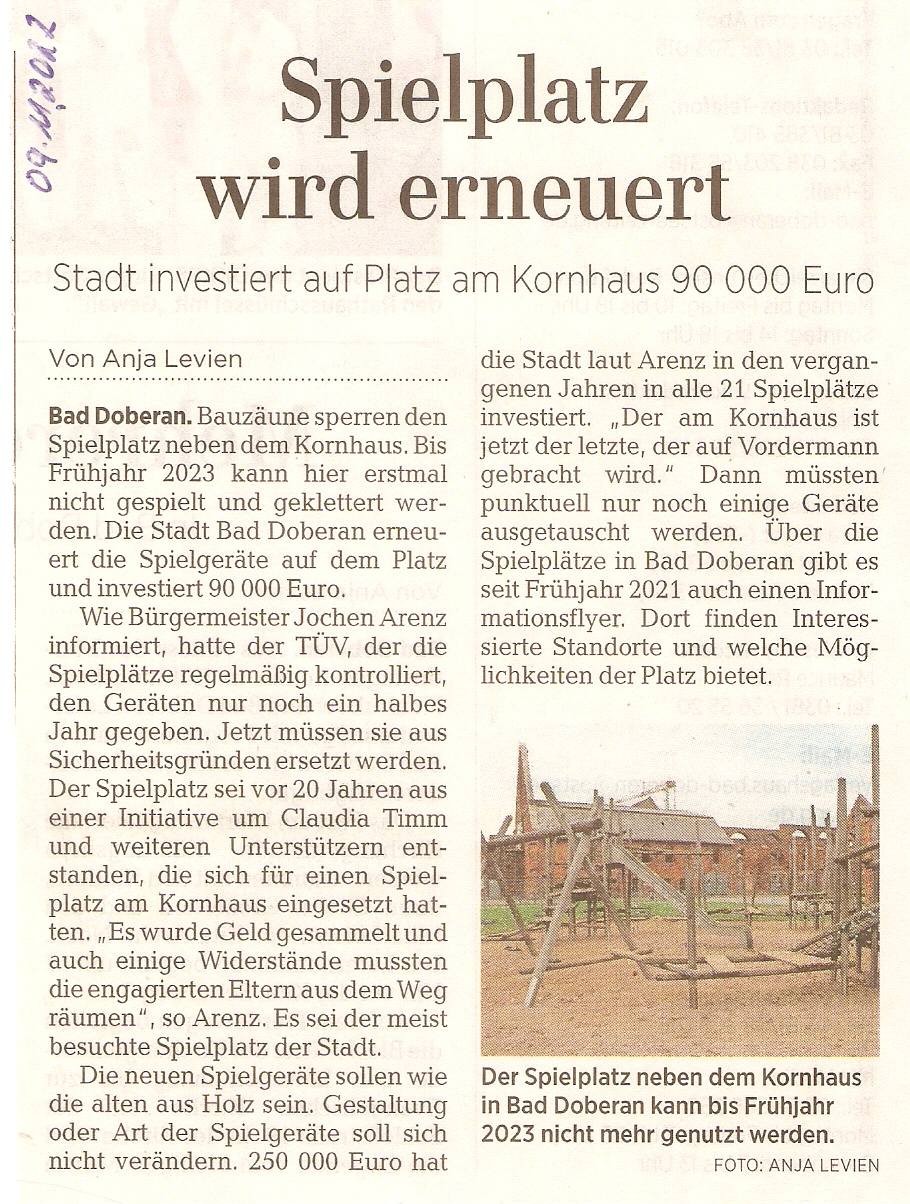 Quelle: Zeitungsregesten und Fotos zum Kornhaus von Peter Zimmermann, Kröpelin