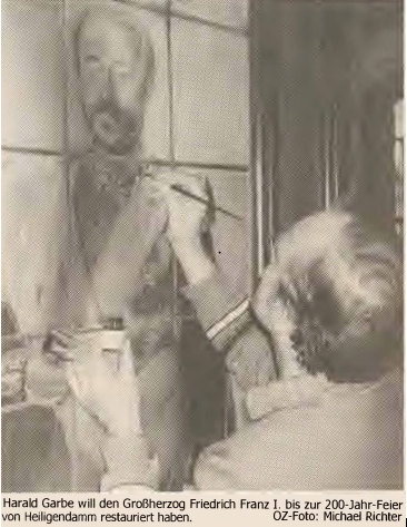- Bad Doberan. Ein Bleiglasfenster mit dem lebensgroßen Abbild von Mecklenburg-Schwerins erstem Großherzog Friedrich Franz (1756 bis 1837) wird derzeit von Harald Garbe, Direktor des Stadtmuseums „ Möckelhaus" restauriert.