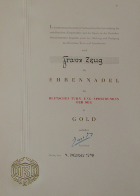 - Das Ehepaar Ingrid und Franz Zeug hat in ihrem Leben einen enormen Beitrag für die Entwicklung des Sports in Bad Doberan geleistet. Zahlreiche Auszeichnungen und Ehrungen zeugen von ihrem unermüdlichem Einsatz im Dienste des Sportes. Dabei spielte die Arbeit mit Kindern und Jugendlichen eine besondere Rolle.