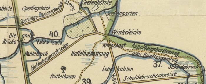 - Auf der Dostschen Heidekarte von 1696 wird sie jedoch als wieder existent angegeben.