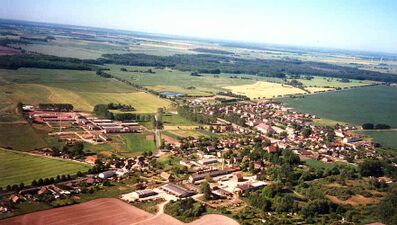 - Dorf mit Pfarrkirche, Schule (2), Förster, Mühle, Krug, Ziegelei. - Hof und dorf 887,7 ha. 1890 295 Einw., 1850 240 Einw. ."