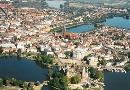 | + | Datei:Schwerin-Luftbild_0351_(2000).jpg|vorn Schelfstadt, hinten Feldstadt | ||