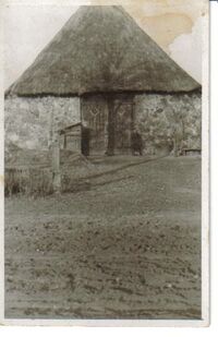 Mit dem Neubau wurden die alten Feldsteine als Umzäunungsmauer verwendet und sind noch heute als solche von beiden Straßen aus sichtbar.
