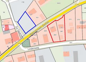 Standort: rot umrandet, enteignet: blau umrandet