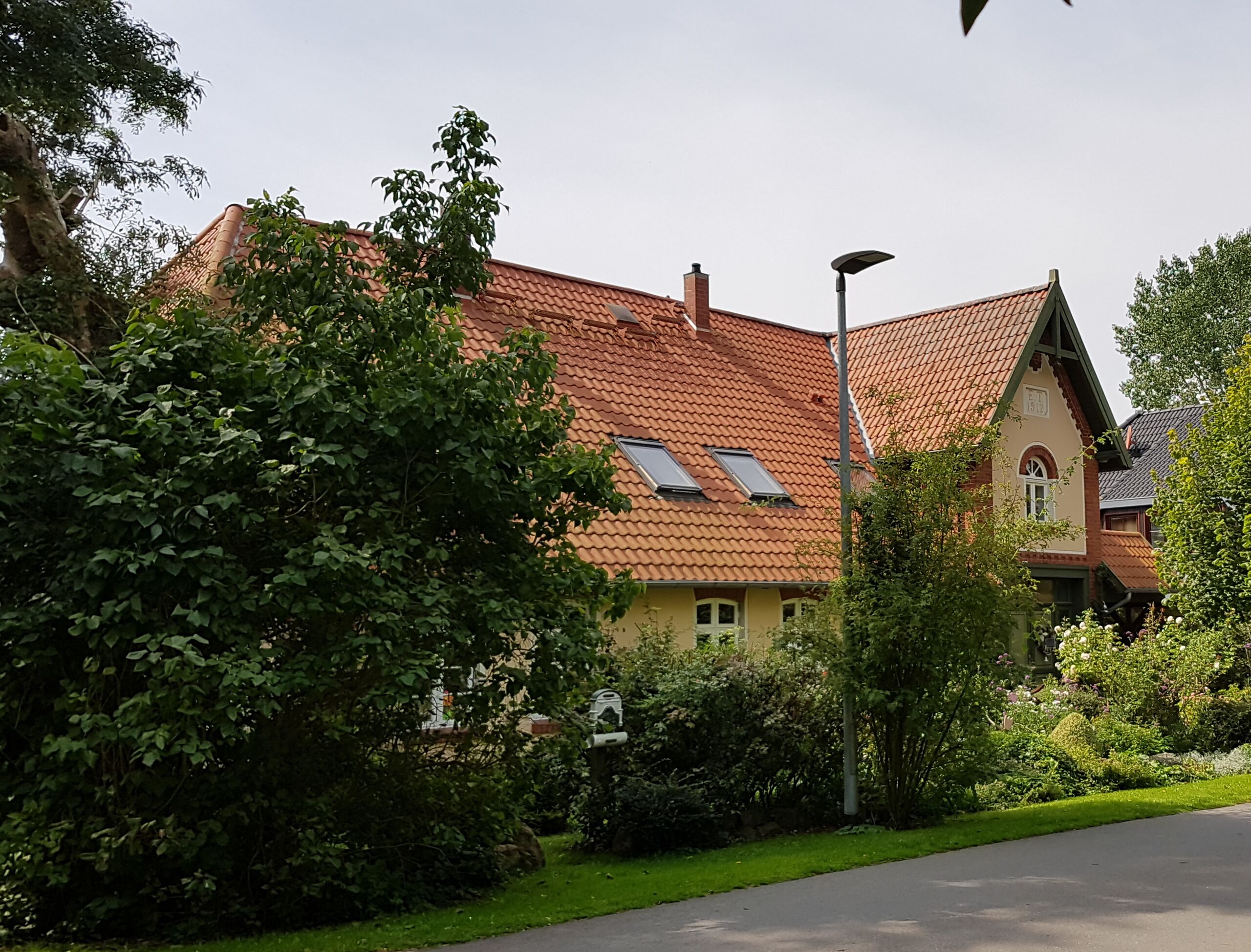 Das von Eduard Teßmann 1912 errichtete Gebäude der Hufe 4; Aufnahme von 2019. Foto: Wiebke Salzmann