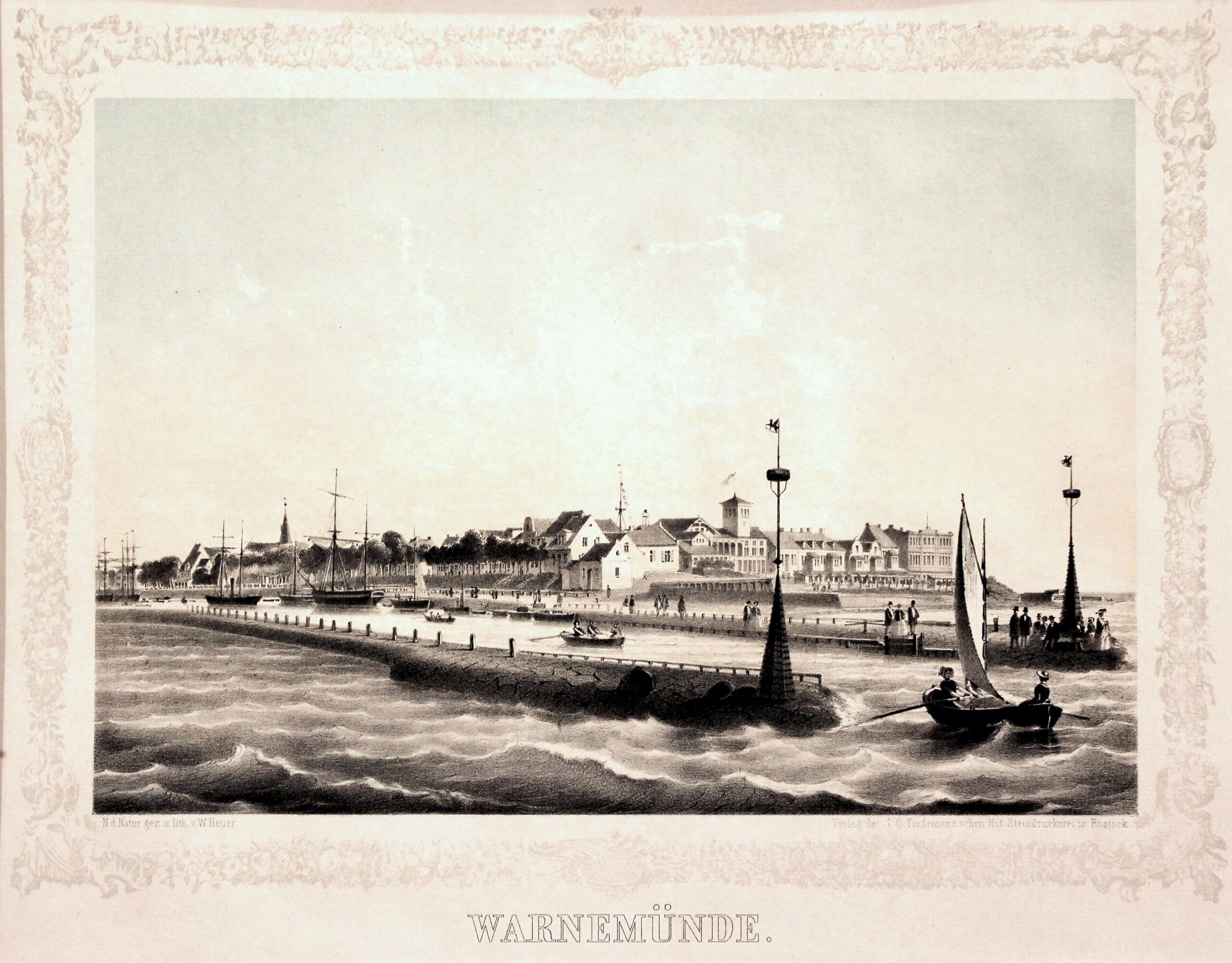 Datei:Lithographie Warnemuende Moleneinfahrt.jpg