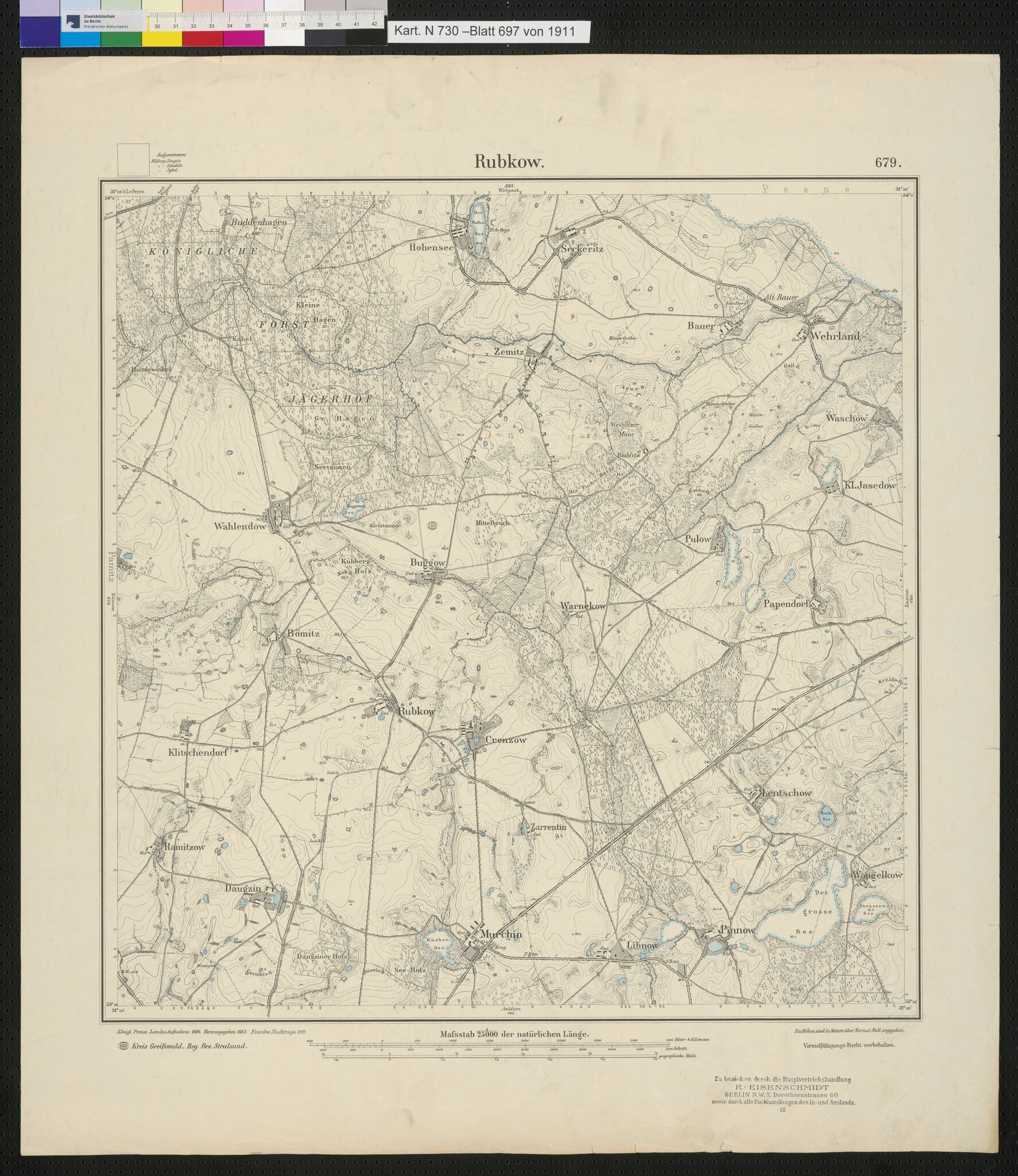 Messtischblatt Signatur Kart. N 730–Blatt 679 von 1911