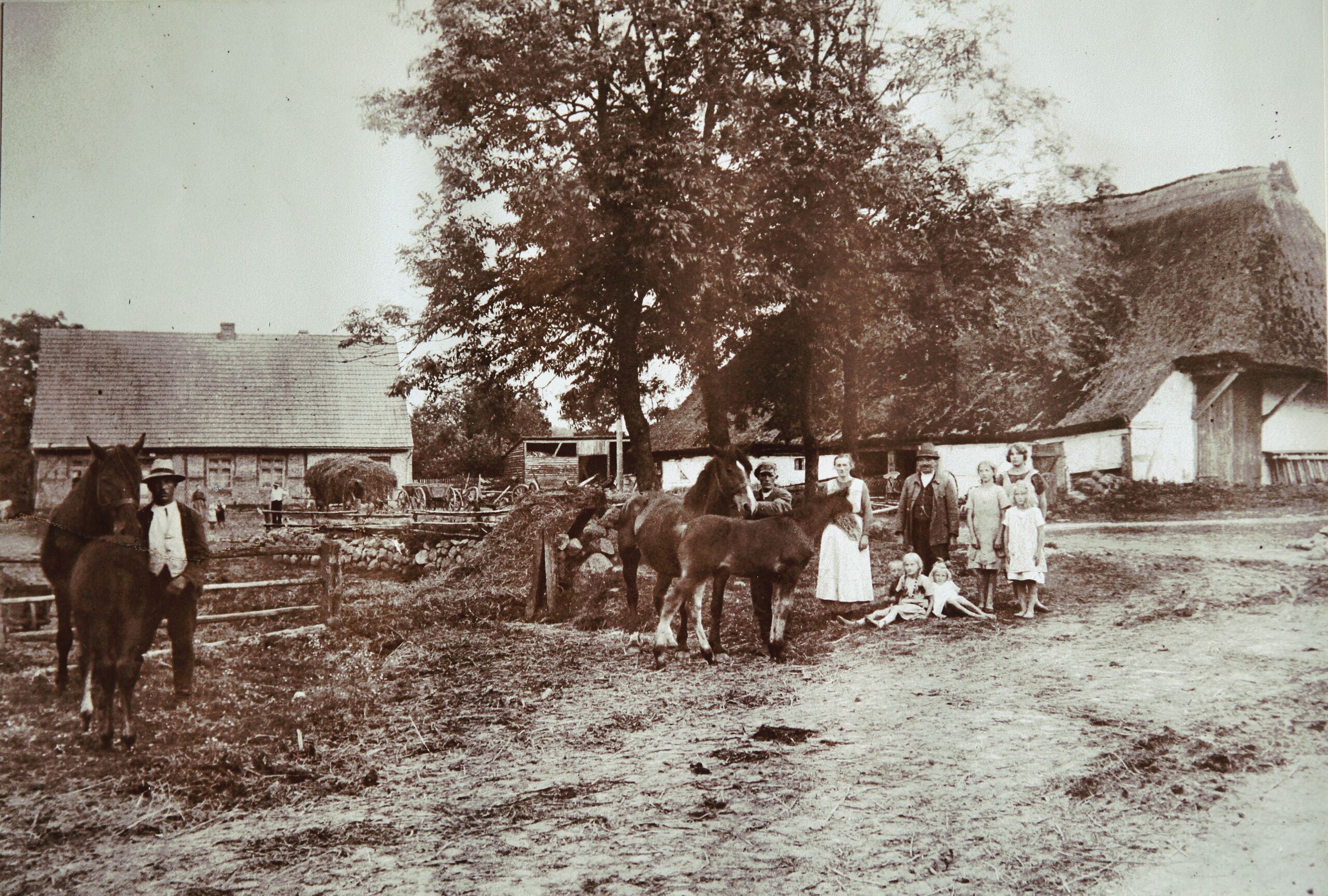 Foto vom Bauernhof der Familie Possehl in Völkshagen, um 1930; heute Unnerdörp 16/17; Foto aus Privatbesitz der Familie Schaepe.